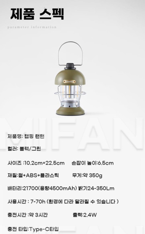 내가 좋아하는 진한 카키컬러의 레트로 모양의 캠핑렌턴이다.